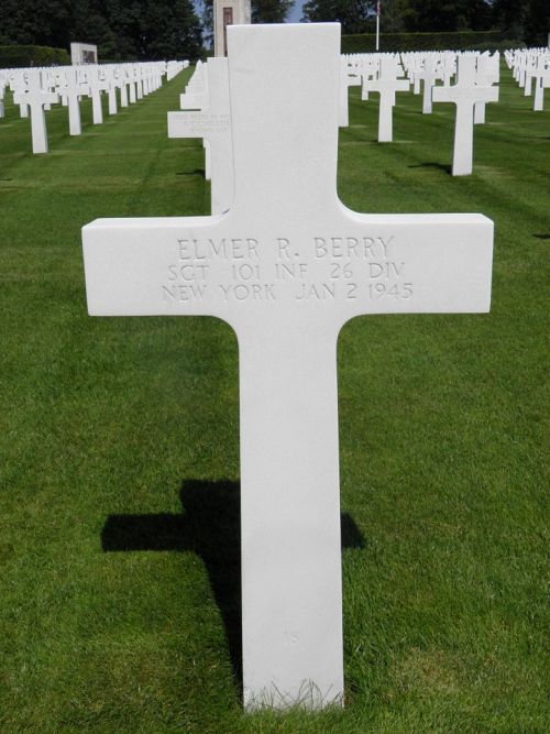 Sgt Elmer R. Berry attended college for one year and was employed as a fireman in the Jamestown Fire Department.He enlisted at Fort Dix, New Jersey on 29 February 1944 and was went overseas 7 October 1944.