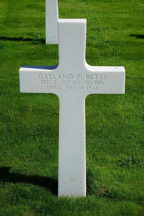 T/5 Gayland P. Betts joined the National Guard in Chillicothe, Ohio on 15 October 1940.Source of information: Peter Schouteten, www.abmc.gov, www.wwiimemorial.com, www.archives.gov – WWII Enlistment Record, www.ancestry.com - Headstone and Interment Record, www.newspapers.com – Chillicothe Gazette Ohio - 29 May 1945, http://www.usarmydatadepot.com/