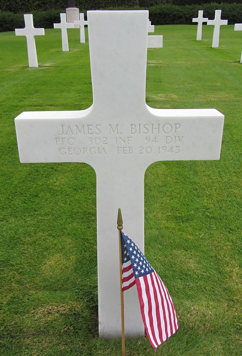 Pfc James M. Bishop attended high school for 2 years and worked on a farm before he enlisted in Fort McPherson Atlanta, Georgia on 6 December 1942.Source of information: Peter Schouteten, www.abmc.gov, www.wwiimemorial.com, www.archives.gov - WWII Enlistment Record, www.ancestry.com - Headstone and Interment Record / Dunn West Family Tree / 1930/1940 Census, http://www.94thinfdiv.com