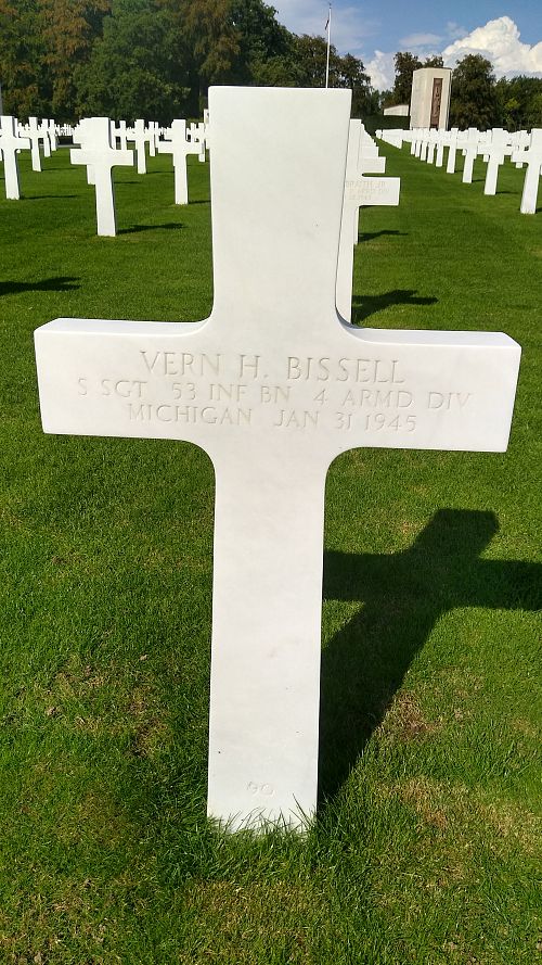 S/Sgt Vern H. Bissell attended Charlevoix High School before he enlisted in Kalamazoo, Michigan on 3 September 1942.Source of information: André Koch, Carla Mans, www.abmc.gov, www.wwiimemorial.com, www.ancestry.com - 1930/1940 Census / U.S. WWII Draft Cards Young Men, AAR 53rd IB - July 44 thru May 1945