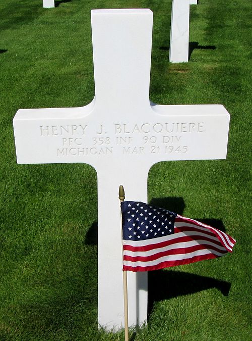 Pfc Henry J. Blacquiere attended 1 year at Calvin College and was a shipping and receiving clerk before he enlisted in Kalamazoo, Michigan on 20 February 1943.Source of information: Peter Schouteten, www.abmc.gov, www.wwiimemorial.com - John Blacquiere, www.archives.gov - WWII Enlistment Record, www.ancestry.com - Headstone and Interment Record / Rood Essenberg Family Tree