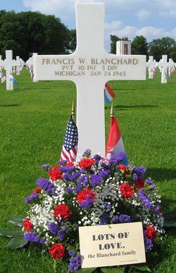 Pvt Francis W. Blanchard graduated from Swartz Creek High School and was a meat cutter in a grocerystore before he enlisted.Pvt Blanchard is remembered at Maple Forest Cemetery in Maple Forest Township, Crawford County, Michigan with a memorial marker.