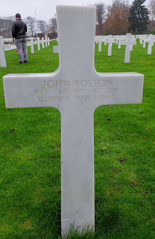 Pvt John Bolton was killed by artillery shell fragments.Source of information: Nick Lieten, www.abmc.gov, www.wwiimemorial.com, www.fold3.com – WWII Hospital Admission Card File, www.65thdiv.com