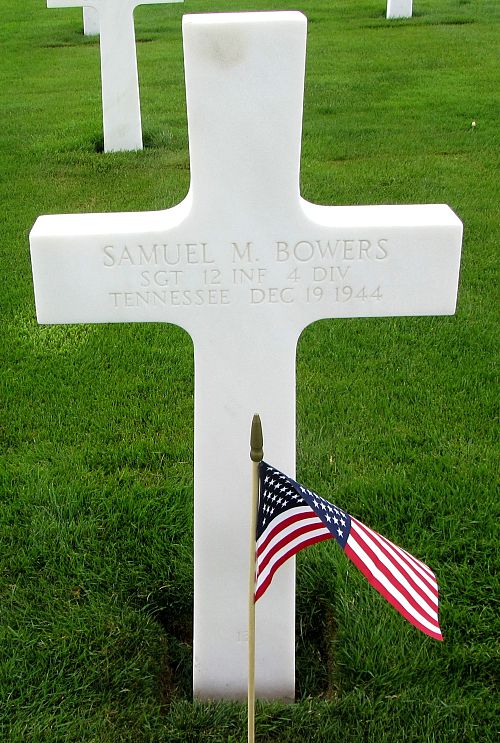 Sgt Samuel M. Bowers attended high school for two years and was a crane man before he enlisted at Camp Shelby, Mississippi on 23 June 1944. He was sent overseas in November 1944.Source of information: Peter Schouteten, Company’s / 4ID After Action Reports, www.abmc.gov, www.wwiimemorial.com, www.archives.gov – WWII Enlistment Record, www.ancestry.com - Headstone and Interment Record / Pierce Family Tree, www.findagrave.com
