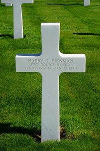 Pfc Harry J. Bowman enlisted in Philadelphia, Pennsylvania, on 12 October 1943.Source of information: Peter Schouteten, www.abmc.gov, www.wwiimemorial.com, www.archives.gov – WWII Enlistment Record, www.ancestry.com - Headstone and Interment Record, http://www.94thinfdiv.com