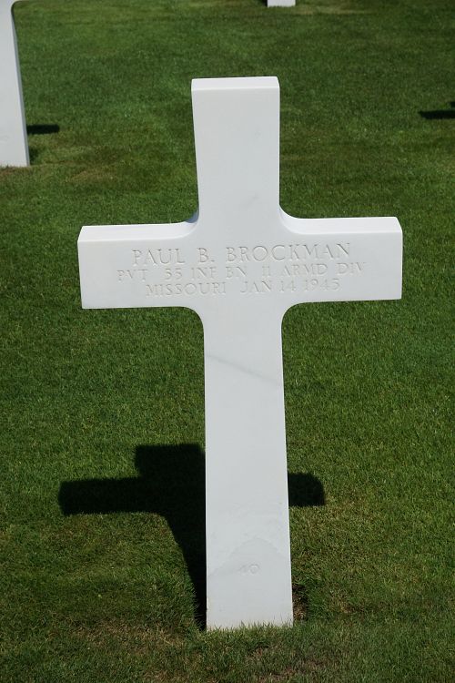 Pvt Paul B. Brockman enlisted at Jefferson Barracks, Missouri on 25 September 1942.Source of information: André Koch, www.abmc.gov, www.wwiimemorial.com, www.archives.gov - WWII Enlistment Record, www.ancestry.com - 1930/1940 Census / Headstone and Interment Record / U.S. WWII Draft Cards Young Men, http://www.11tharmoreddivision.com