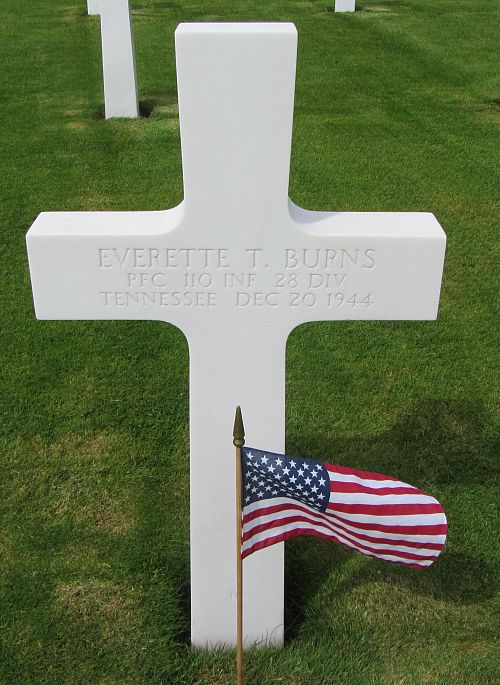 Pfc Everette T. Burns graduated from Beech Hill High School and was employed at the General Shoe Company.He enlisted at Fort Oglethorpe, Georgia on 7 May 1943.