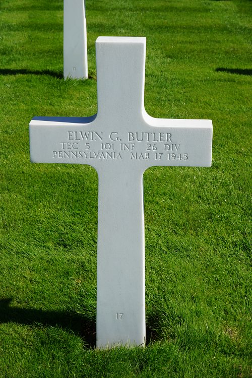 T/5 Elwin G. Butler enlisted in Wilkes Barre, Pennsylvania on 18 June 1942.He died in a field hospital to the effects of artillery shell fragments on his small intestine.