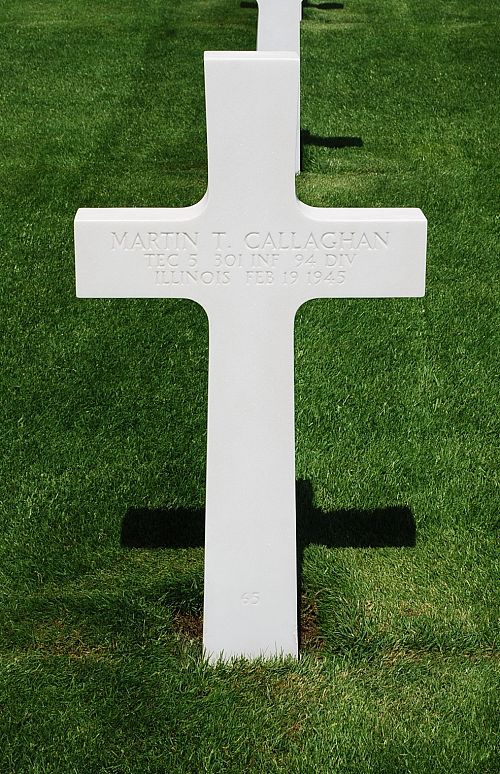 T/5 Martin T. Callaghan attended Loyola Academy.Source of information: Peter Schouteten, www.abmc.gov, www.wwiimemorial.com, www.ancestry.com - Headstone and Interment Record / Callaghan Family Tree / 1930 Census, http://www.94thinfdiv.com, www.findagrave.com