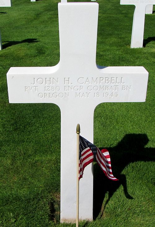 Pvt John E. Campbell worked on a farm before he enlisted at Camp Shelby, Mississippi on 20 October 1943.He was first buried at the Temporary American Military Cemetery in Grand-Failly, France.