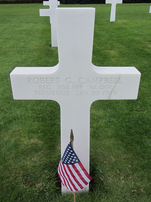 Pfc Robert G. Campbell attended high school for 4 years before he enlisted in Fort Oglethorpe, Georgia on 9 January 1943.Source of information: Peter Schouteten, Terry Hirsch, www.abmc.gov, www.wwiimemorial.com, www.archives.gov – WWII Enlistment Record, www.ancestry.com - Headstone and Interment Record / 1930 Census, http://www.94thinfdiv.com, www.findagrave.com – Carolyn Golowka, WWII Draft Card