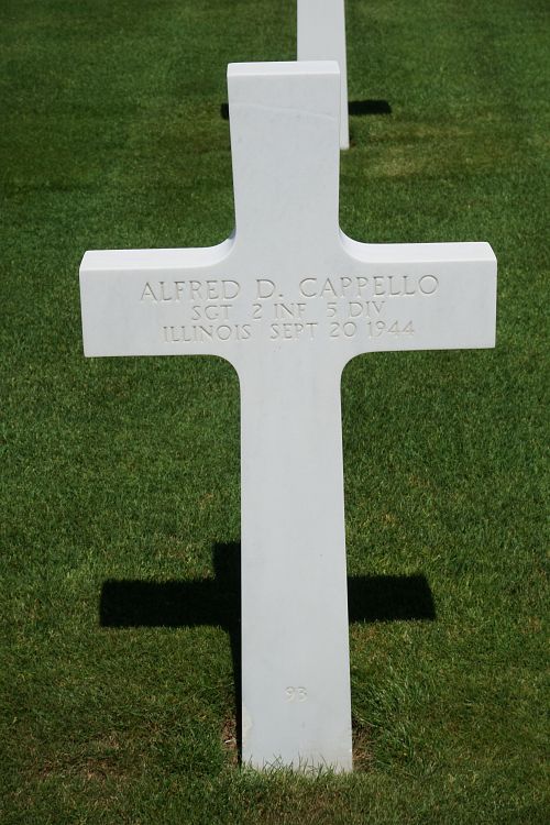 Sgt Alfred D. Capello attended Bowen High School and was employed at the Carnegie-Illinois Steel Mill.He joined the Regular Army in Chicago, Illinois on 9 April 1941.