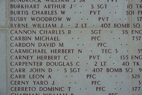Pfc David M. Cardon enlisted at Fort Bliss El Paso, Texas on 7 July 1942.He was declared officially dead one day and one year after he was reported missing in action.