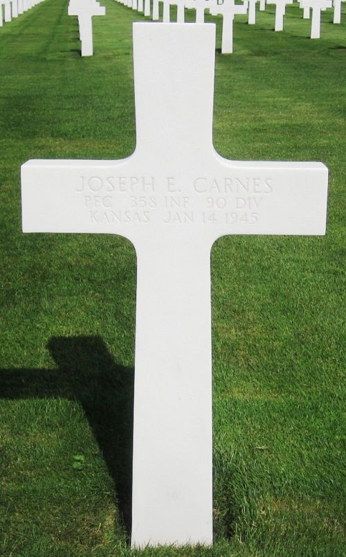 Pfc Joseph E. Carnes attended high school for 1 year and was a general industry clerk before he enlisted at Fort Leavenworth, Kansas on 23 October 1943.Source of information: Peter Schouteten, www.abmc.gov, www.wwiimemorial.com, www.archives.gov – WWII Enlistment Record, www.ancestry.com - Headstone and Interment Record / Kirby Cain Family Tree / 1940 Census / U.S. WWII Draft Cards Young Men