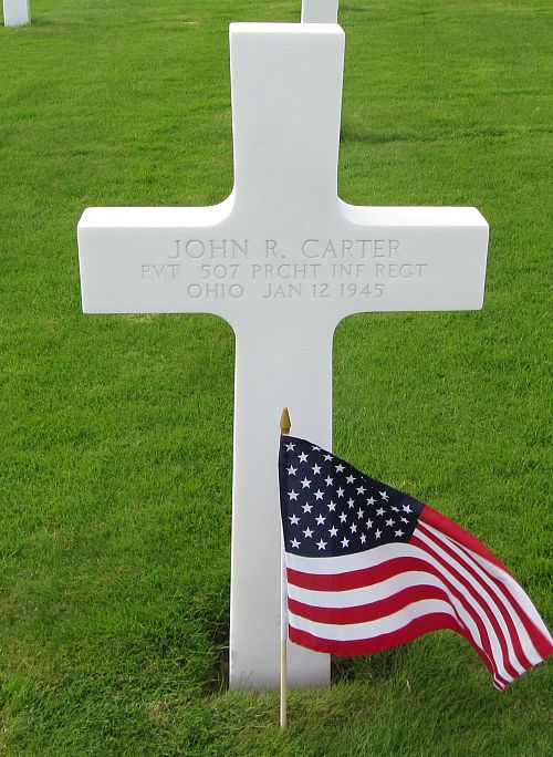 Pvt John R. Carter attended Cardington High School and was employed at the Gandee Baking Company and the J. B. Henry Trucking Service before he enlisted in Columbus, Ohio on 19 January 1943.He was first buried at the Temporary American Military Cemetery in Grand-Failly, France.