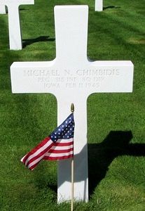 Pfc Michael N. Chimbidis was still attending high school when he enlisted at Camp Dodge, Iowa on 3 June 1944. He was sent overseas in January 1945.He was killed by artillery shell fragments in the face, forehead and the side of his body.