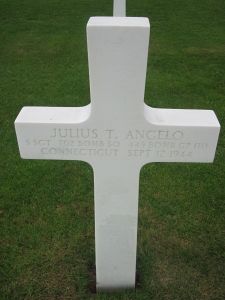 The remains of S/Sgt Angelo and those of another crew member, Theodore N. Emens were buried together in one wooden casket. Two crew members, Wendell R. Knapp and Thomas H. Cleary could be identified at the time of the burial, the others couldn't.