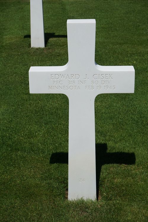 Pfc Edward J. Cisek graduated from Edison High School in 1938 and University of Minnesota in 1942. He worked from Standard Oil Company in South America.He enlisted at Fort Snelling, Minnesota on 30 June 1944.