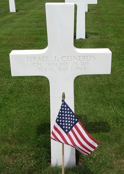 Cpl Israel J. Cisneros attended college and was a motion picture projectionist before he joined the Regular Army on 19 December 1939.Source of information: André Koch, www.abmc.gov, www.wwiimemorial.com, www.ancestry.com - 1920/1930/1940 Census, Newcomer-Perez Family Tree, Headstone and Interment Records, http://76thdivision.com, http://www.honorstates.org