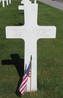 S/Sgt Michael S. Cochran was a salesman before he enlisted in Cumberland, Pennsylvania on 9 March 1942.Source of information: Leo Minne, www.abmc.gov, www.wwiimemorial.com, www.ancestry.com - Headstone and Interment Record / 1930/1940 Census / U.S. Draft Cards Young Men / Pennsylvania Veteran Compensation Application, www.80thdivision.com