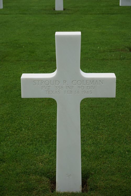 Pvt Stroud R. Coleman attended high school for 2 years and was a statistical clerk before he joined the Regular Army in Dallas, Texas on 24 July 1940.Source of information: Peter Schouteten, www.abmc.gov, www.wwiimemorial.com, www.archives.gov - WWII Enlistment Record, www.ancestry.com - Headstone and Interment Record / A Tree of Other's Ancestors, http://www.findagrave.com