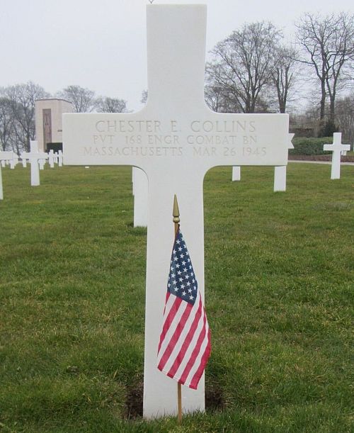 Pvt Chester E. Collins attended high school for one year and was employed at the Early American & English Furniture Company before he enlisted in Boston, Massachusetts on 14 January 1944.Source of information: Peter Schouteten, www.abmc.gov, www.wwiimemorial.com, www.archives.gov, www.ancestry.com - Headstone and Interment Record / U.S. WWII Draft Cards Young Men / Snediker Family Tree / 1940 Census