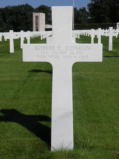 Pfc Robert C. Conklin was employed at the Capital Pierce Dye Works Inc. before he enlisted in New York City, New York on 12 February 1943.Source of information: Peter Schouteten, Carla Mans, www.abmc.gov, www.wwiimemorial.com, www.archives.gov – WWII Enlistment Record, www.ancestry.com - Headstone and Interment Record / U.S. WWII Draft Cards Young Men, www.findagrave.com – R.C., www.fold3com – 26th Infantry Division