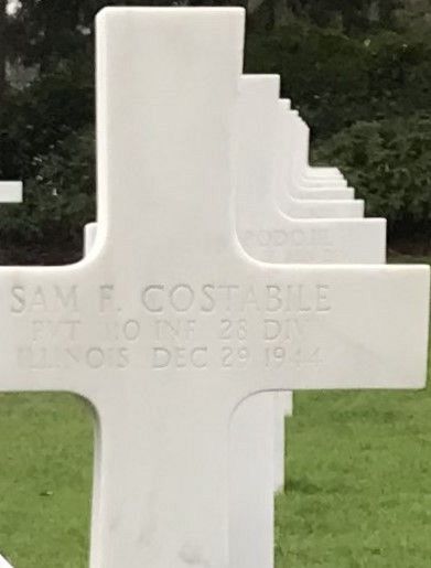 Pvt Sam F. Costabile was first buried at the Temporary American Military Cemetery in Grand Failly, France.Source of information: Peter Schouteten, www.abmc.gov, www.wwiimemorial.com, www.ancestry.com - Headstone and Interment Record / 1940 Census / U.S. WWII Draft Cards Young Men, www.findagrave.com