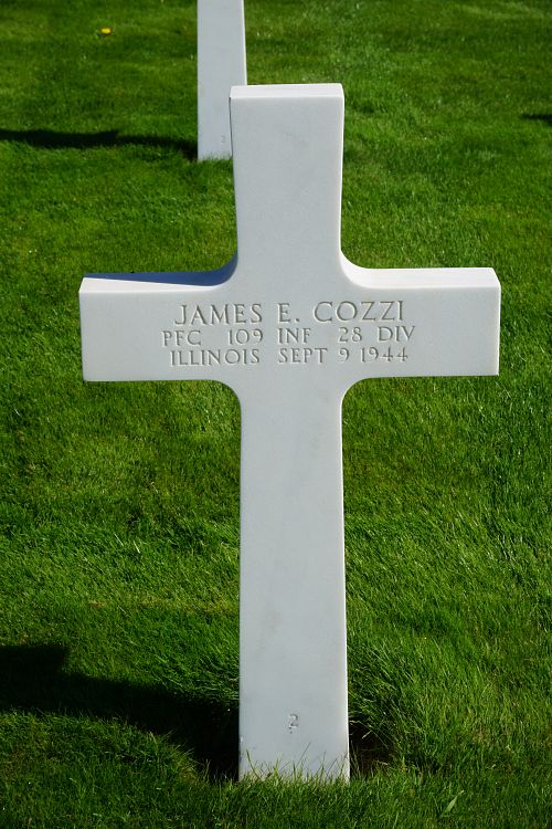 Pfc James E. Cozzi enlisted in Chicago, Illinois on 15 September 1942.Source of information: Peter Schouteten, Terry Hirsch, www.abmc.gov, www.wwiimemorial.com, www.archives.gov – WWII Enlistment Record, www.ancestry.com - Headstone and Interment Record / 1920/1940 Census, www.findagrave.com, WWII Draft Card