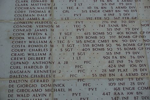 T/Sgt William A. Craig attended Yonkers High School for four years and was a financial institution clerk at the Colonial Trust Company before he volunteered for the Army of the United States in New York City, New York on 29 September 1942. He was sent overseas in June 1944.Source of information: Peter Schouteten, www.abmc.gov, www.wwiimemorial.com, www.archives.gov - WWII Enlistment Record, www.ancestry.com - U.S. WWII Draft Cards Young Men / New York Birth Index, www.findagrave.com - MAJ Jimmy Cotton, Combat History 79th Infantry Division