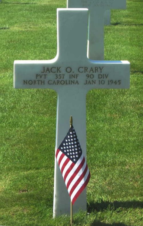 Pvt Jack O. Crary attended high school for 4 years and worked on a farm before he enlisted at Fort Bragg, North Carolina on 22 June 1944.He is remembered at the Oak Grove Cemetery in Brevard, Transylvania County, North Carolina.
