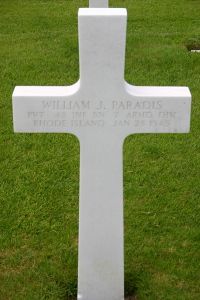 Pvt William J. Paradis enlisted on 29 October 1943 in Providence, Rhode Island.Source of information: Peter Schouteten, Carla Mans, www.wwiimemorial.com, www.archives.gov, www.ancestry.com - U.S. WWII Draft Cards Young Men / WWII Enlistment Record / 1920/1930 Census / Headstone and Interment Record, http://www.7tharmddiv.org/index.htm