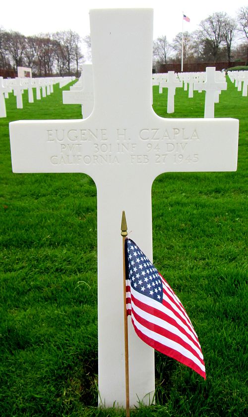 Pvt Eugene H. Czapla graduated from Anaheim High School before he enlisted in Los Angeles, California on 1 March 1943.Source of information: Peter Schouteten, www.abmc.gov, www.wwiimemorial.com, www.archives.gov - WWII Enlistment Record, www.ancestry.com - Headstone and Interment Record / 1930 Census / U.S. WWII Draft Cards Young Men, http://www.94thinfdiv.com, www.findagrave.com - Don