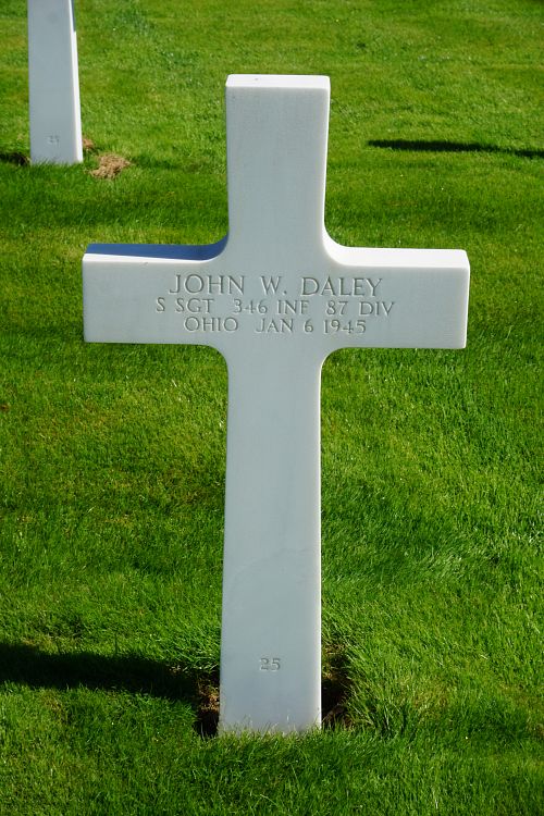 S/Sgt John W. Daley enlisted in Cincinnati, Ohio on 20 July 1942.He was first buried at the Temporary American Military Cemetery in Grand Failly, France.