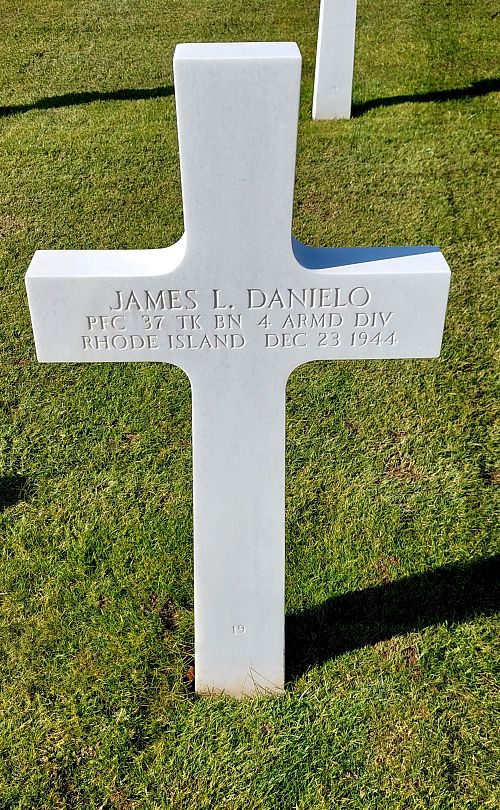Pfc James L. Danielo enlisted in Providence, Rhode Island on 3 January 1944.He was initially buried at the Temporary American Military Cemetery of Grand Failly, France