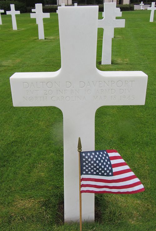 Pvt Dalton D. Davenport attended high school for two years and worked on a farm before he enlisted at Fort Bragg, North Carolina on 27 September 1944.Source of information: Peter Schouteten, www.abmc.gov, www.wwiimemorial.com, www.archives.gov – WWII Enlistment Record, www.ancestry.com - Headstone and Interment Record / 1930 Census / U.S. WWII Draft Cards Young Men, www.10tharmored.com