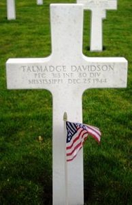 Pfc Talmadge Davidson worked on the family farm before he enlisted at Camp Shelby, Mississippi on 4 March 1943.He was killed by artillery shell fragments in the thorax.