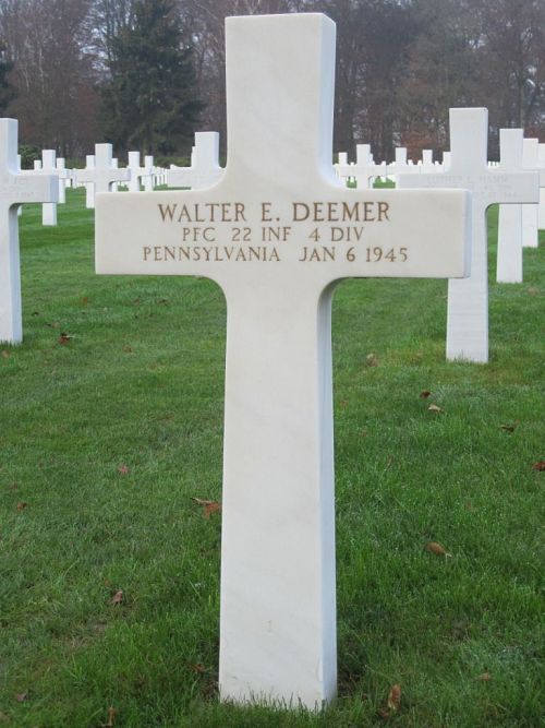 Pfc Walter E. Deemer graduated from Wilkinsburg High School and was working as a mechanic in his father’s battery service before he enlisted in New Cumberland, Pennsylvania on 24 June 1944.He was sent overseas on 4 December 1944 and had been in action only a few days when he was killed.