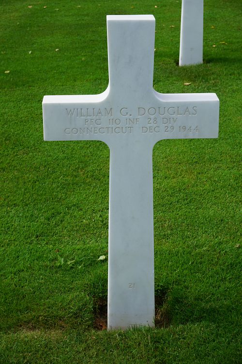 Pfc William G. Douglas enlisted in Hartford, Connecticut on 12 April 1943.He was first buried at the Temporary American Military Cemetery in Grand Failly, France.