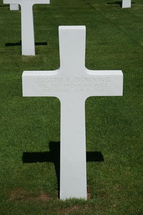 Pfc Joseph R. Downing attended before he joined the Regular Army on 22 November 1939.He was first buried at the Temporary American Military Cemetery in Grand-Failly, France.