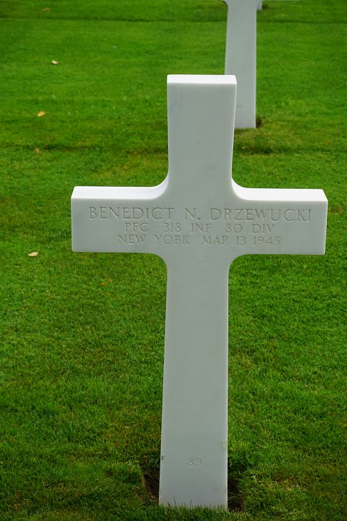 Pfc Benedict N. Drzewucki was employed by the Chrevolet Motors Ayle Corporation before he enlisted on 30 June 1942.He was killed by artillery shell fragments causing multiple wounds at the side of his body and arm.