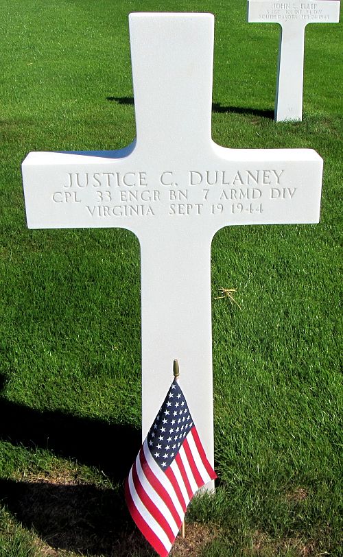 Cpl Justice C. Dulaney was a carpenter before he enlisted at Camp Lee, Virginia on 21 February 1942.Source of information: André Koch, www.abmc.gov, www.wwiimemorial.com, www.archives.gov - WWII Enlistment Record, www.ancestry.com - Headstone and Interment Record / 1920/1930/1940 Census / U.S. WWII Draft Cards Young Men 1940-1947 / Virginia Birth Records 1912-2015 + Delayed Birth Records 1721-1911, https://www.7tharmddiv.org