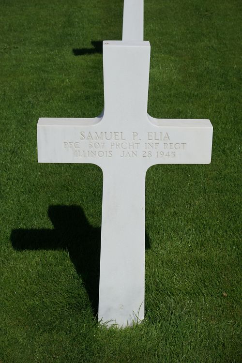 Pfc Samuel P. Elia was employed at the Wittek Manufacturing Company.Source of information: Peter Schouteten, www.abmc.gov, www.wwiimemorial.com, www.archives.gov, www.ancestry.com - Headstone and Interment Record / U.S. WWII Draft Cards Young Men / Vecchio Family Tree, www.findagrave.com – MAJ Jimmy Cotton, www.ww2-airborne.us