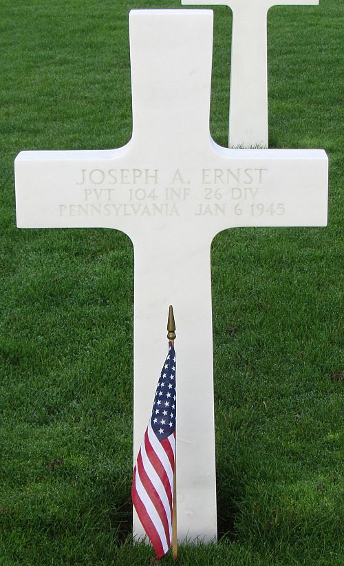 Pvt Joseph A. Ernst attended high school for four years and was a clerk before he enlisted in Philadelphia, Pennsylvania on 23 March 1943.