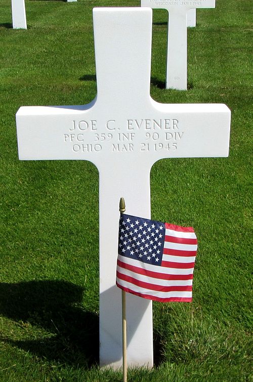Pfc Joe C. Evener attended high school for 2 years before he enlisted in Columbus, Ohio on 4 January 1943.Source of information: Peter Schouteten, www.abmc.gov, www.wwiimemorial.com, www.archives.gov - WWII Enlistment Record, www.ancestry.com - Headstone and Interment Record / Ohio County Marriages Records / 1940 Census / Webb Family Tree
