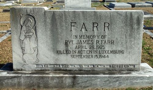 Pvt James R. Farr attended Parker High School and was employed at Woodside Mill.He is remembered at Springwood Cemetery in Greenville, Greenville County, South Carolina with a memorial marker.