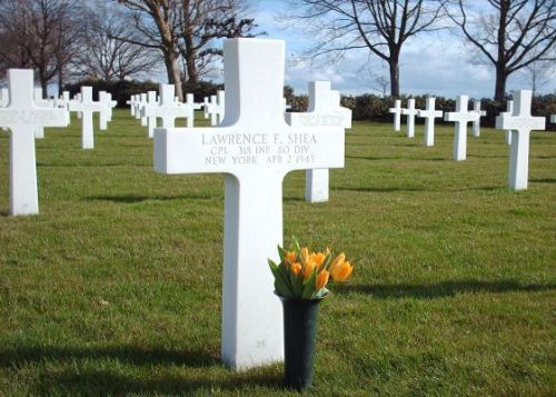 Cpl Lawrence F. Shea enlisted in New York. First, he was stationed in Florida in the US Army Air Forces. At the end of 1944, he was transferred to the infantry. He joined the 80th Infantry Division in Mainz, Germany, on 22 March 1945. Lawrence F. Shea died during a counterattack of German Forces. He was probably killed by a German Tiger tank.From the Brooklyn Daily Eagle: