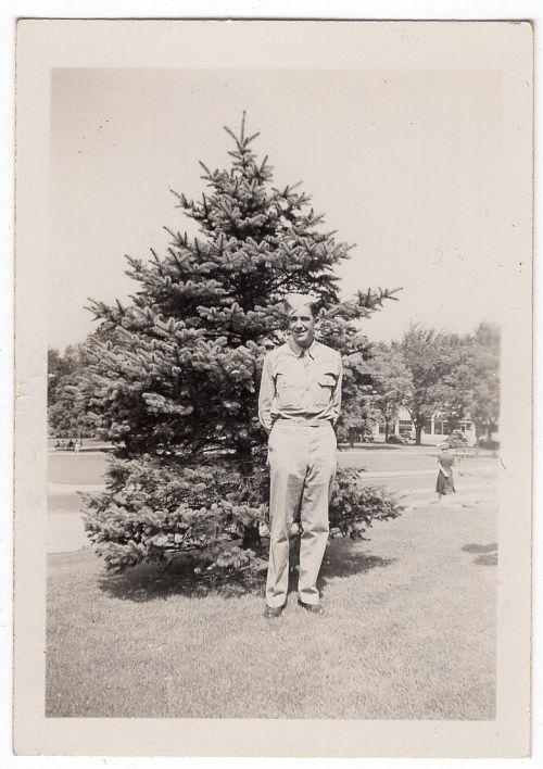 "Corporal Lawrence Shea of 749 President St. was born in Brooklyn. He attended Visitation School and was employed by Oakite Products, Inc. at Bush Terminal, when he entered the army air forces in January, 1942. He was stationed at Avon Park, Fla., until November, 1944, when he was transferred to the infantry, and was sent overseas last March. While with Oakite, he pitched on the company baseball team."