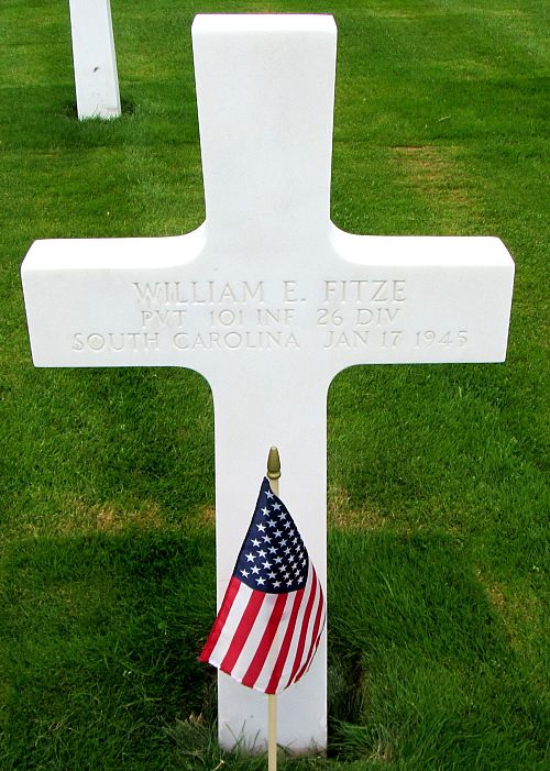 Pvt William E. Fitze attended high school for one year and was employed at the McKasie Manufacturing Company in Greenville, South Carolina before he enlisted at Fort Jackson, South Carolina on 30 March 1943.Source of information: Peter Schouteten, www.abmc.gov, www.wwiimemorial.com, www.archives.gov – WWII Enlistment Record, www.ancestry.com - Headstone and Interment Record / U.S. WWII Draft Cards Young Men / Williams Family Tree, www.fold3.com – 26th Infantry Division