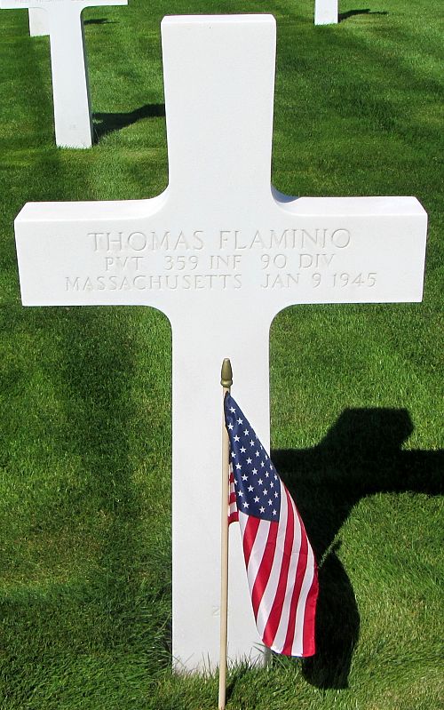 Pvt Thomas Flaminio attended high school for 2 years and was a driver when he joined the National Guard in Worcester, Massachusetts on 16 January 1941. He was also called Tommaso by his family.His brother Patsy is buried in the Netherlands American Cemetery and Memorial. A square was erected in Worcester in honor of the brothers.